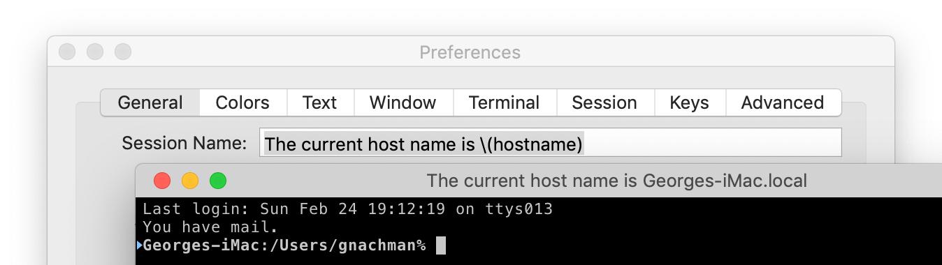 \(currentTab.currentSession.hostname). Likewise, tab titles are evaluated in